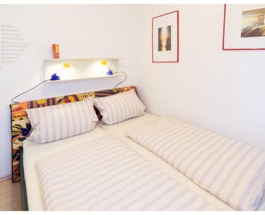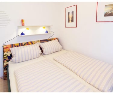 Es steht Ihnen ein Schlafzimmer für die Nachtruhe zur Verfügung. Dieses verfügt über ein Doppelbett mit den Maßen 160x200 cm. Selbstverständlich ist für Ihre Kleidung ausreichend Stauraum in den großen Kleiderschränken vorhanden.